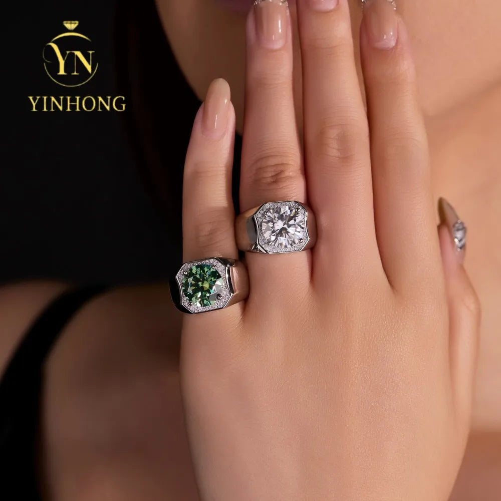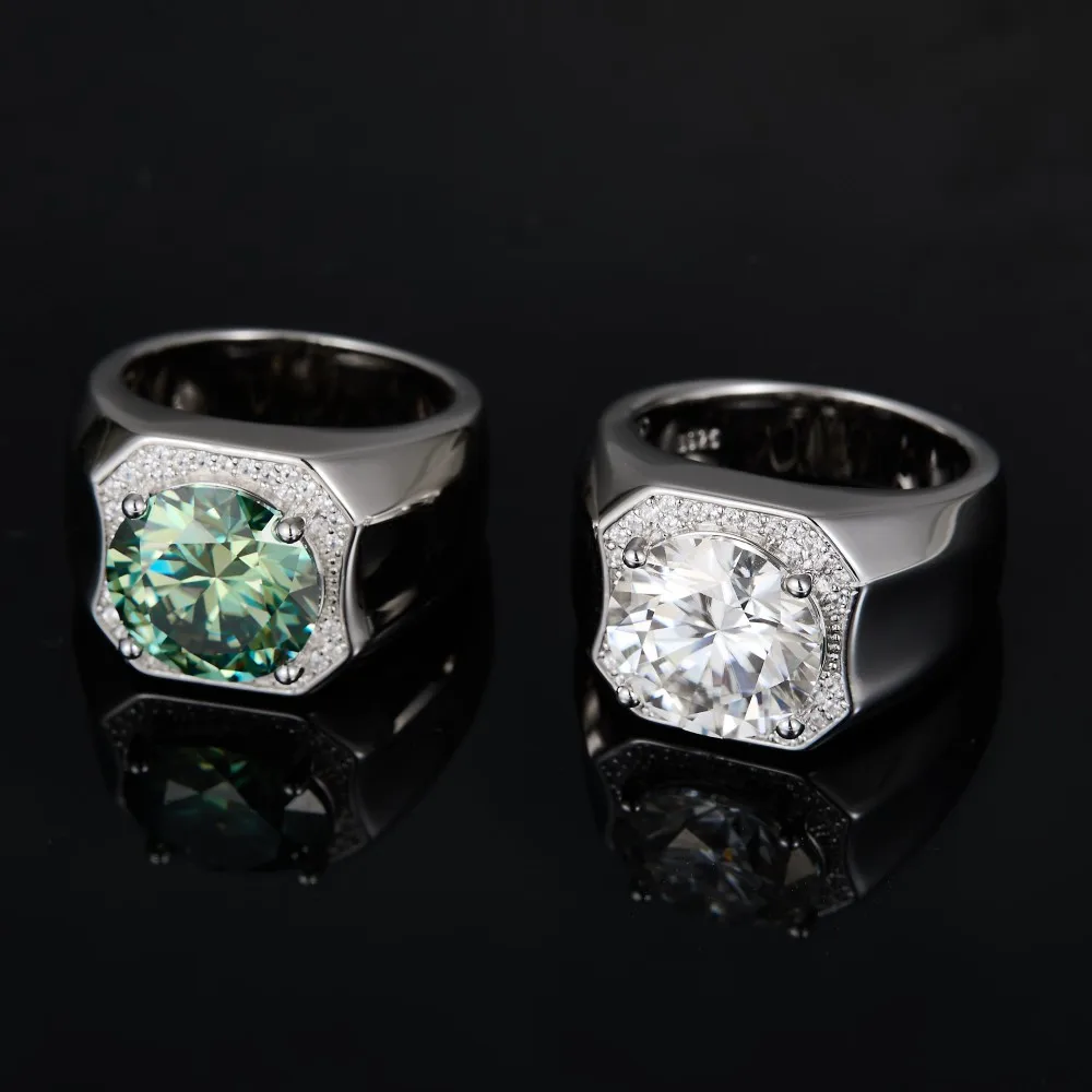 5 Carat Dark Green Moissanite Men's Ring - Brilliant Cut, GRA Certified & Diamond Tested