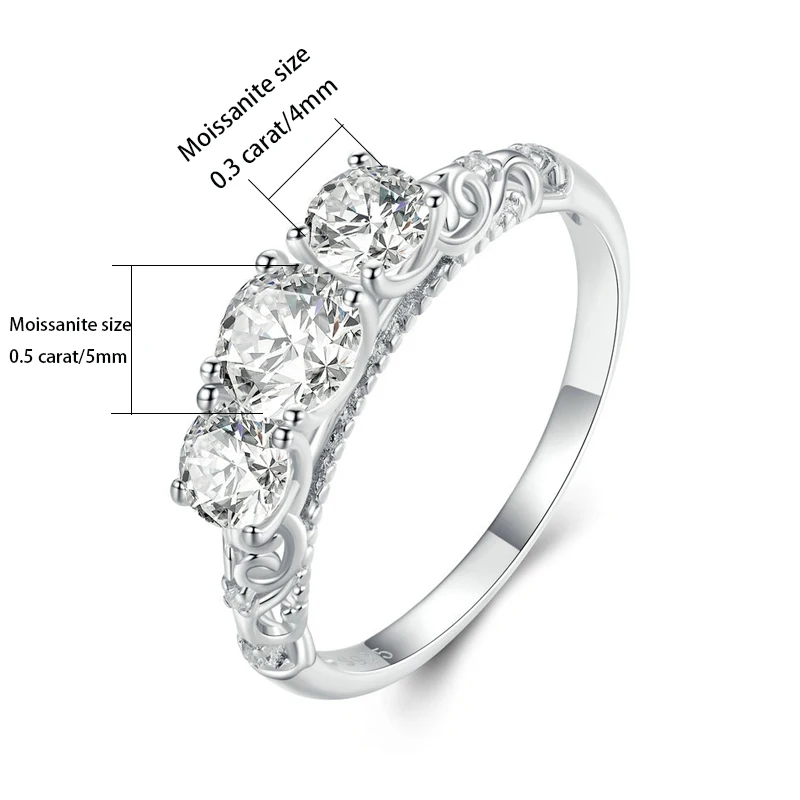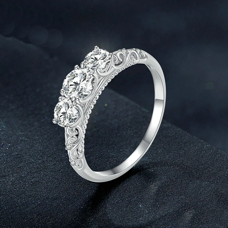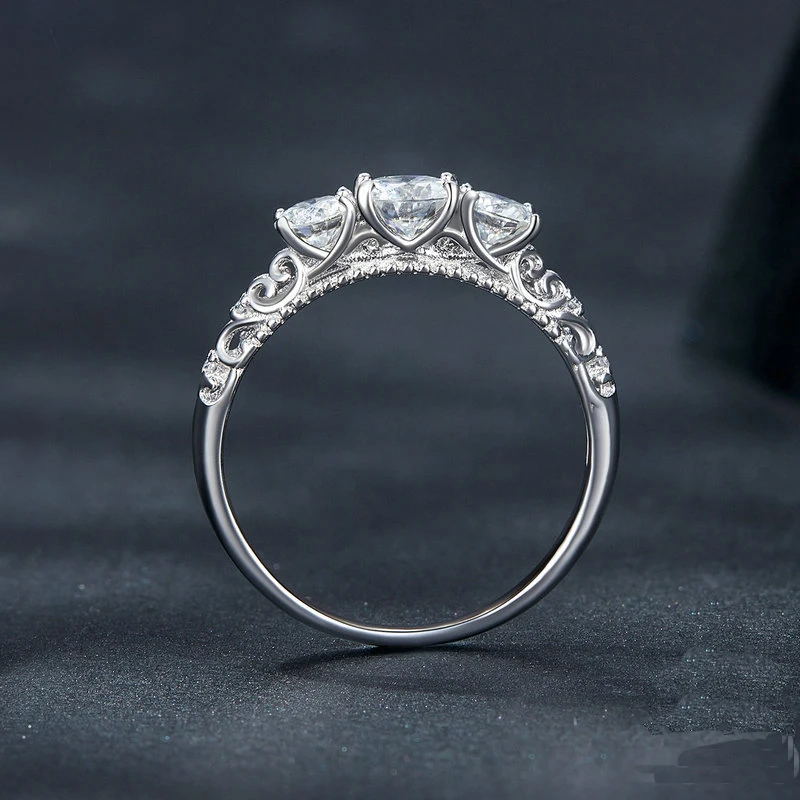 S925 Silver 1.1ct Moissanite Ring French Classical Pattern Luxury Minimalist Style Wedding Gift for Wife Mother's Day